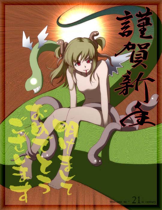 camcamさんから御年賀イラストを頂きました。 細長い舌がカワイイですネ〜。 巻きつくとトッテモ気持ち良さそうですな(何所が?(爆) camcamさん有難う御座いました。